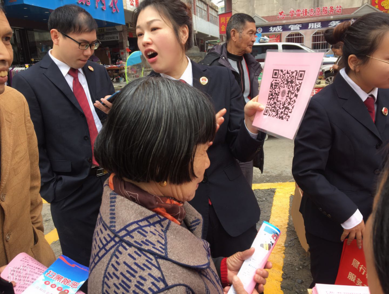 “扫码可以举报吗”群众向广昌县检察院宣传工作人员详细咨询扫黑除恶方面的相关问题以及举报方式,得到了耐心解答。